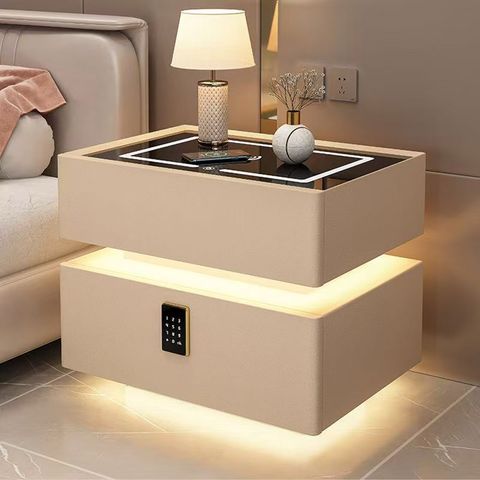 Modern Intelligent Home Smart Nightstand LED Light Wireless Charging Hidden Safe-Box Storage for Bedroom Wooden Bedside Table